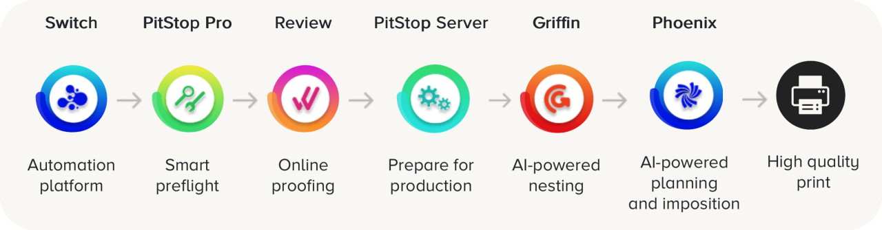 Selain PitStop Pro, EnFocus memiliki berbagai produk untuk memudahkan pada setiap tahap percetakan: